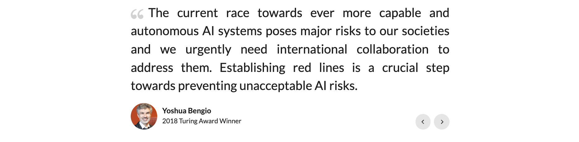 We aim to convert the momentum from the Global Call for AI Red Lines into binding international agreements that establish clear limits on dangerous AI capabilities.