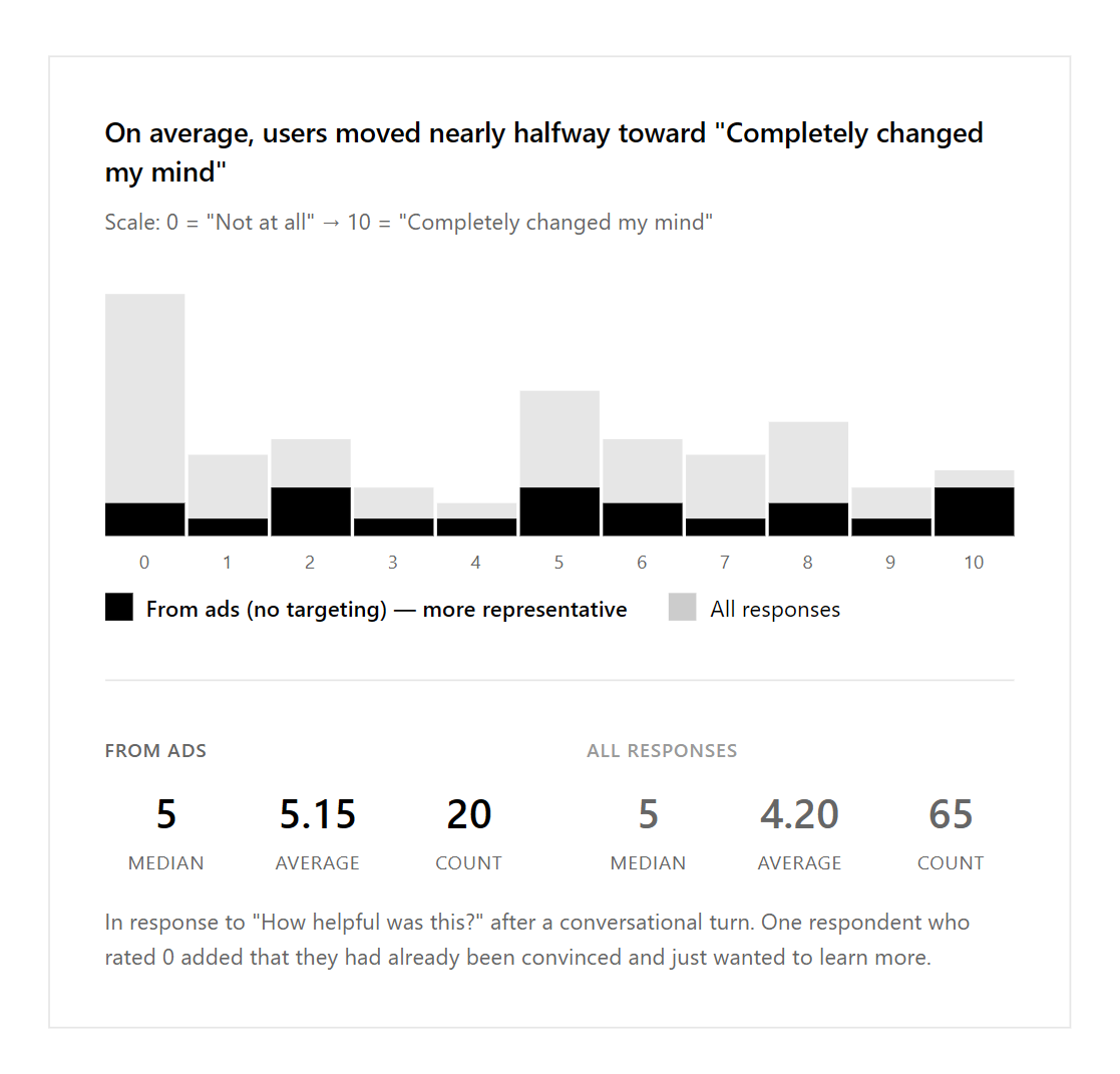 Note that right now, we're not aware of the long-term outcomes: how much do people change their minds or become more precisely concerned about the right problem? (We have some evidence for that via comments, but we don't know what happens to most people.) We'd need higher budgets to be able to robustly measure this.