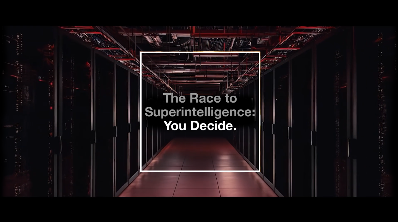 In the film, the user first sees a SETUP VIDEO that tells the story of a race between US and Chinese companies to develop superintelligent AI. The user must then make a choice, as in the original scenario, whether to “win the race” or “slow down”. They make their choice by clicking on one of two YouTube end cards.
